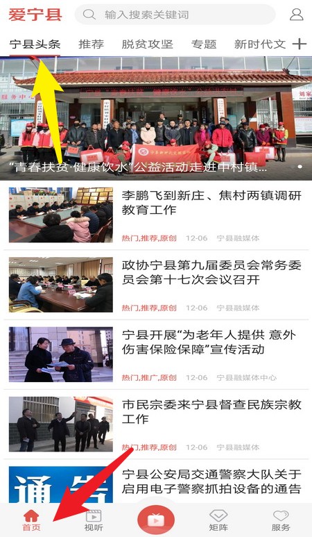 1、在首页点击“宁县头条”栏目,可浏览本地最新新闻资讯与重要事件,获取权威及时的宁夏县区动态信息。