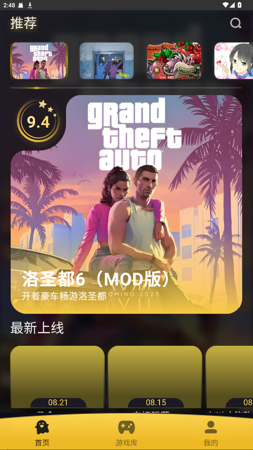 2.成功进入主页之后,我们可以看到各种最新上线,热门的游戏资源。