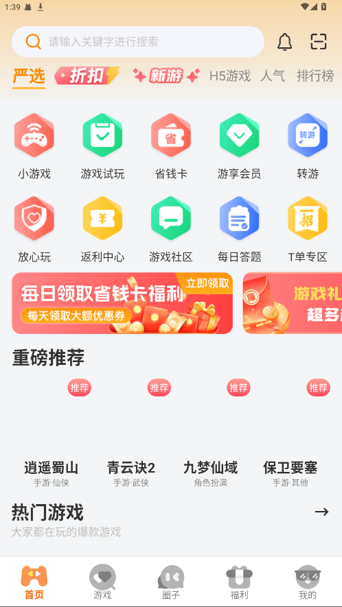 1、打开软件进入到首页可以看到各种游戏